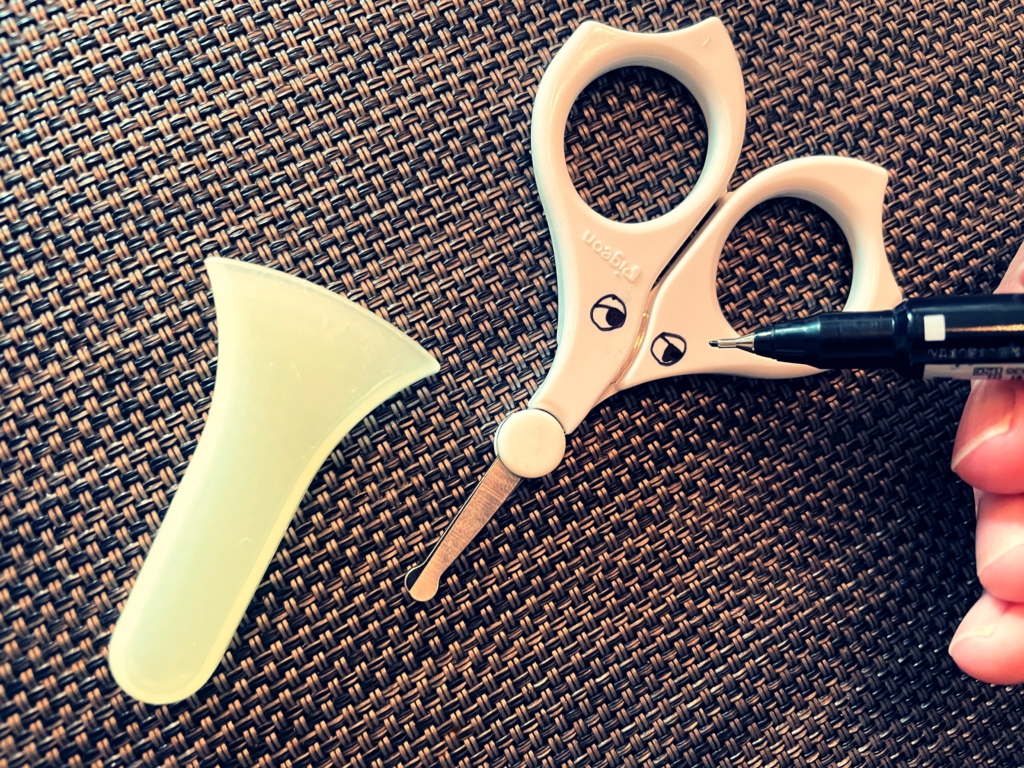ここからが裏技です!黒マジックなどで、爪切りに目を描いて、命を吹き込みます。